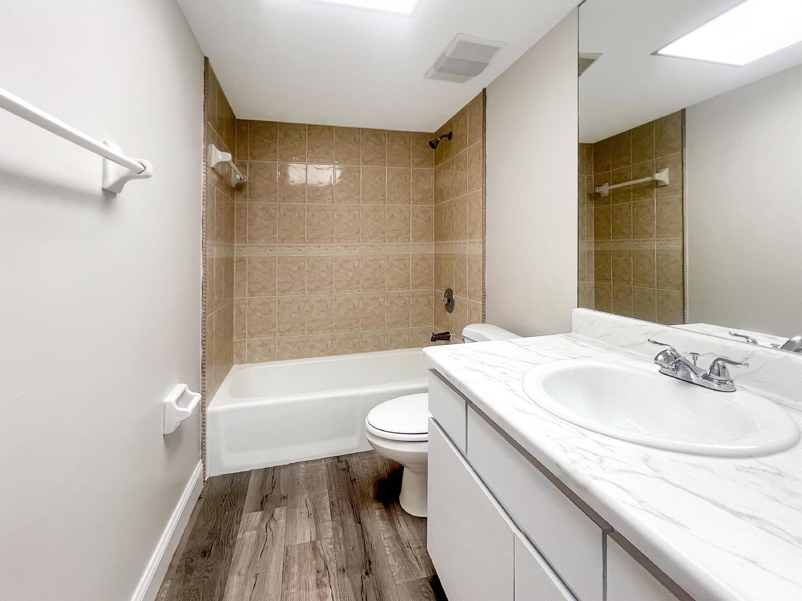 The three bedrooms are generously sized, each offering comfort and tranquility. The primary suite is a haven of relaxation, featuring a spacious layout, a well-appointed ensuite bathroom, and ample closet space.