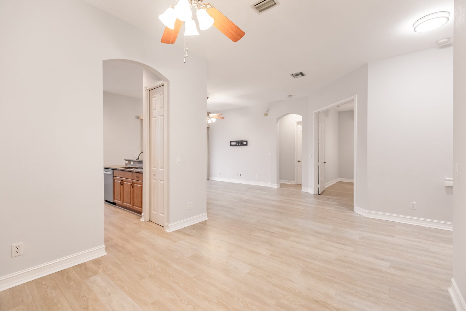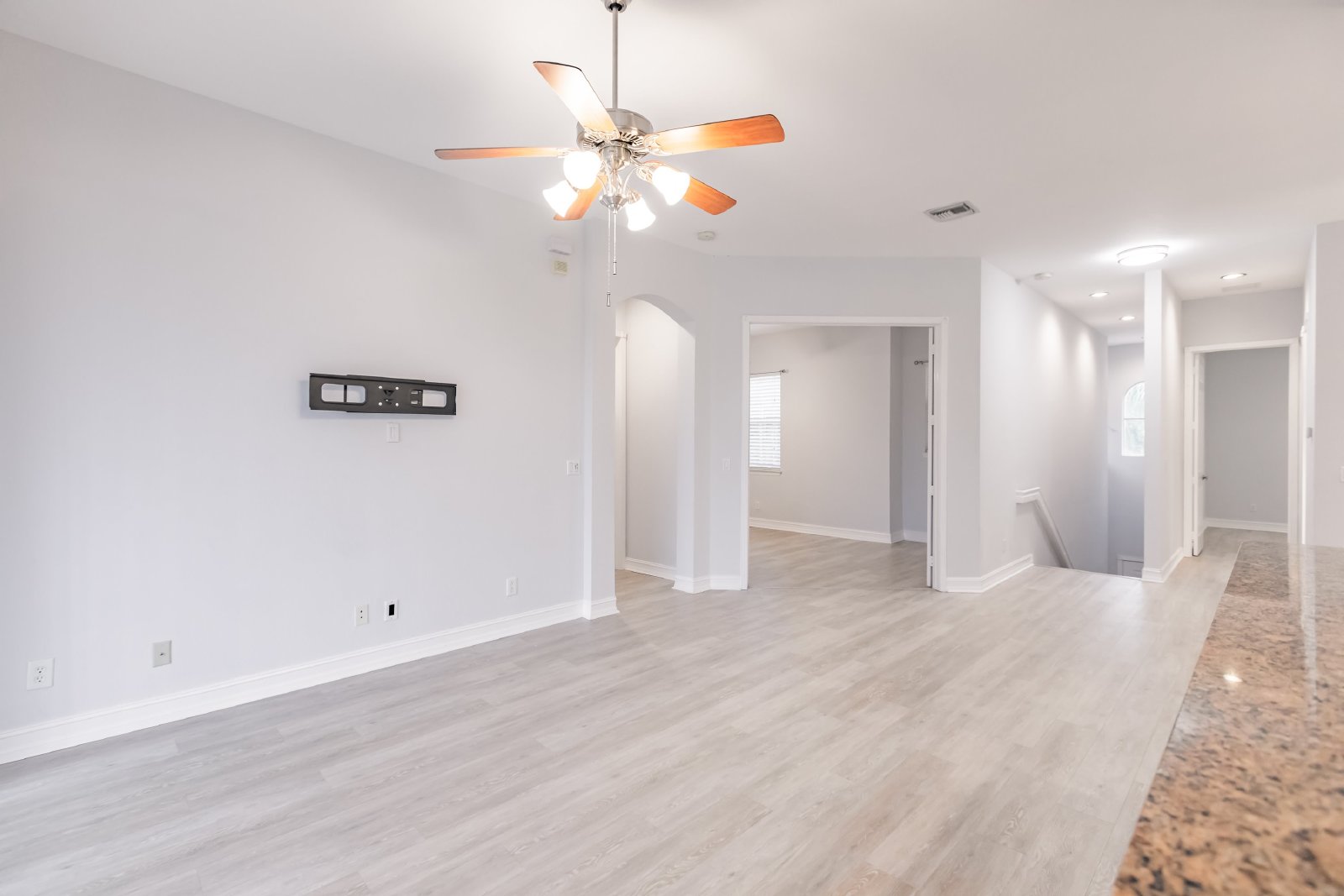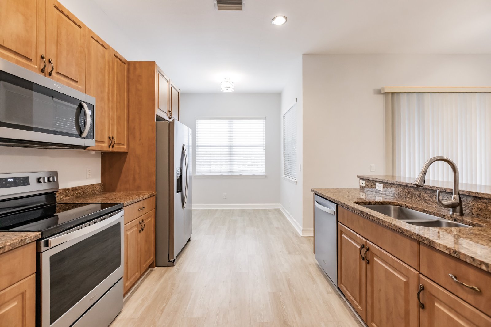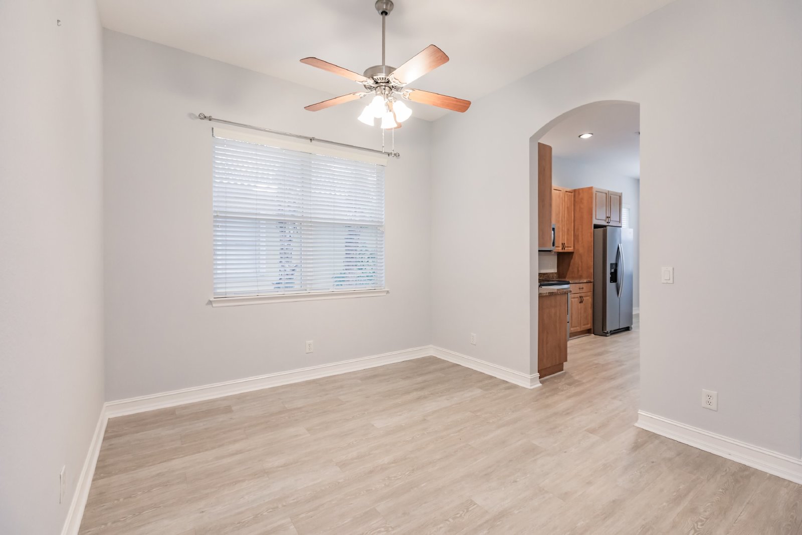 Upon entering, you are greeted by an open floor plan that seamlessly connects the living, dining, and kitchen areas. The well-appointed kitchen features contemporary appliances, ample cabinet space, and a convenient breakfast bar.