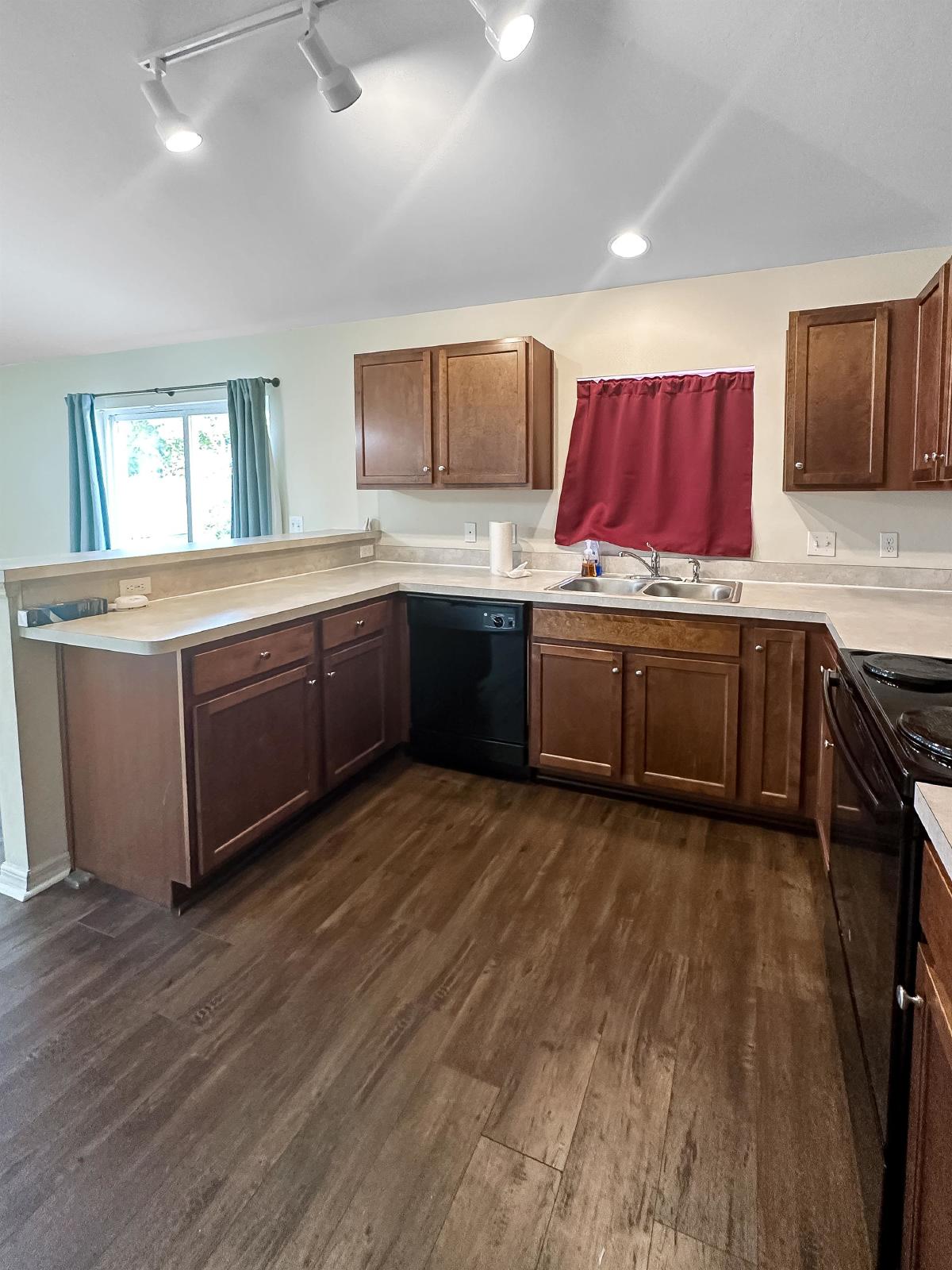 The adjacent kitchen is a true delight for the aspiring chef. It boasts modern appliances, sleek countertops, ample cabinetry for storage, and a convenient breakfast bar for casual dining. Whether you're hosting a family gathering or preparing a cozy meal, this kitchen is sure to impress.