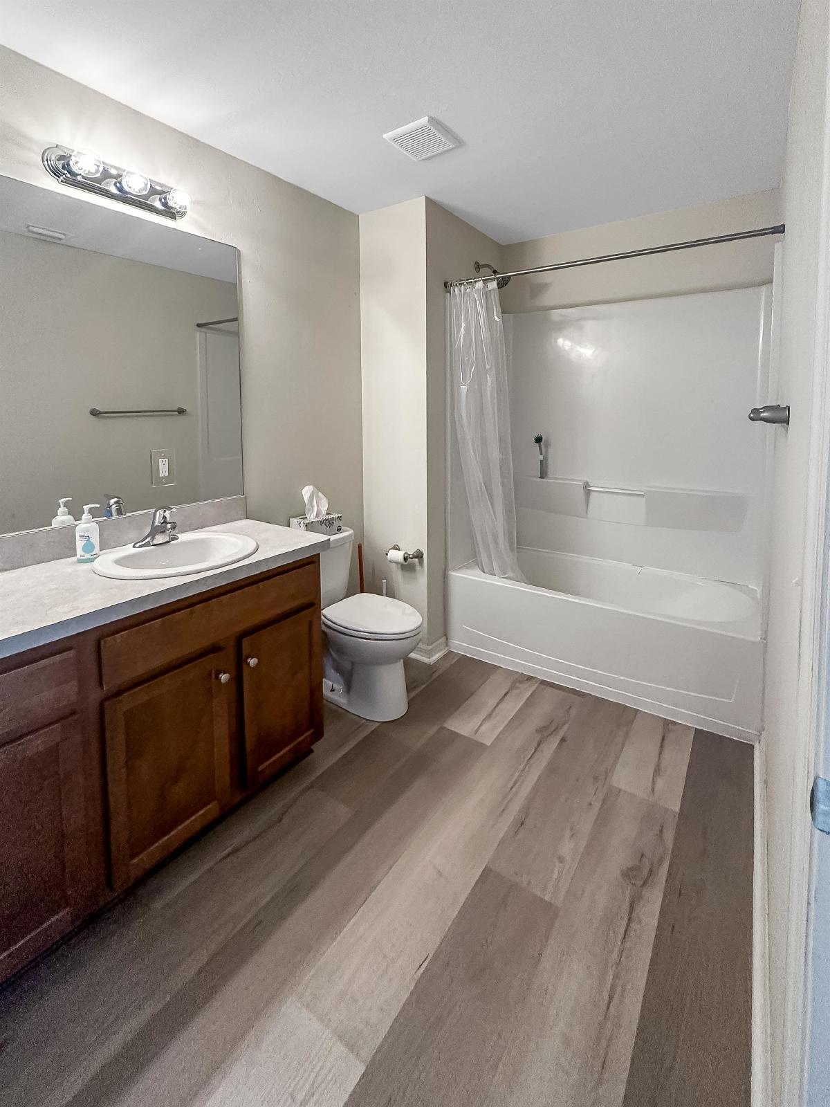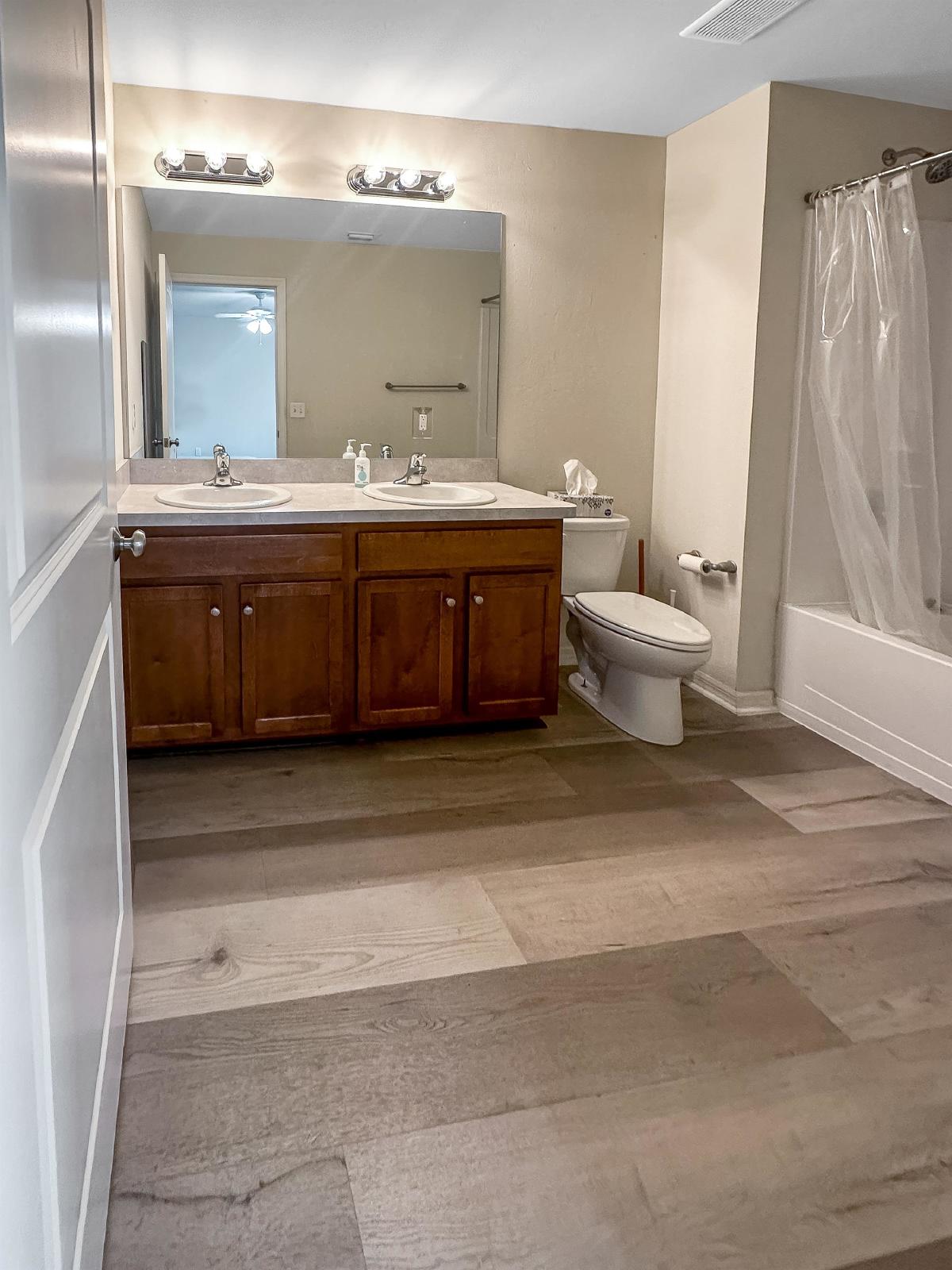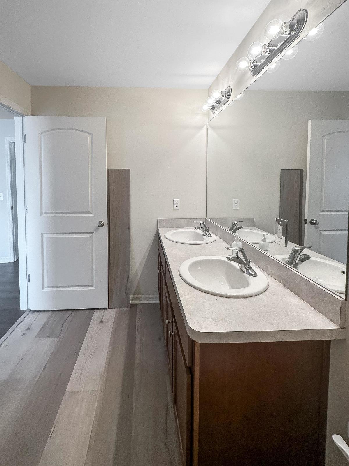 The primary bedroom is a peaceful retreat, offering a private sanctuary to unwind after a long day. It features generous space, a walk-in closet, and an en-suite bathroom complete with a luxurious soaking tub, and a dual vanity.