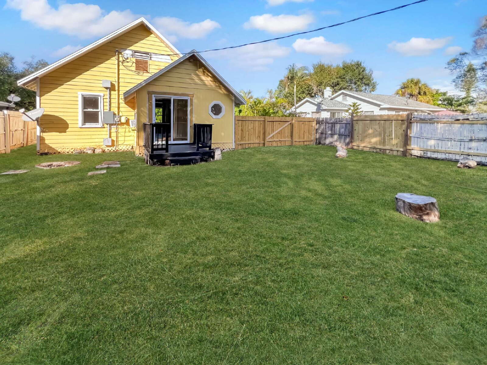 Out back? A fully fenced yard perfect for furry friends and fall fire pits (one is already in place). Yup—we’re pet-friendly, so bring your pup in a holiday sweater.